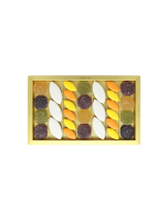 - Ingredients Gels de fruits : Sucre, Sirop de glucose de BLE, Gélifiant : pectine, Arômes naturels : abricot, ananas, Acidifiant : jus de citron, Colorants : curcumine E100, Couverture : sucre cristal, calibré fin. Confiture aux 3 agrumes : Sucre de betterave, Pulpe d’orange amère 15%, citron 10% et pamplemousse 10%, Eau, Acide citrique E330, Pectine citrus E440. Tablette aux fruits confits : Sucre , beurre de cacao ; poudre de LAIT entier 29.5% ; émulsifiant: lécithine de SOJA, arôme naturel de vanille ; cacao 28% minimum ; Papayes, cubes d'orange, cerises, sirop de glucose, fructose, saccharose, conservateurs E220 (SULFITE), correcteur d'acidité E330. Colorants E120, E150a, E133, E127. Fruits confits : Clémentines ; Poires ; Pêches ; Tranches d'orange ; Cerises Bigarreaux ; Abricots ; Ananas ; Melon ; Prunes ; Angélique ; Sirop de glucose – fructose ; Sorbate de potassium E202 ; Acide citrique E330 ; ANHYDRIDE SULFUREUX E220 ; Saccharose ; Carmin de cochenille E120 ; Sucre caramel E150a ; Bleu brillant E133. Ecorces d'orange et citron au sucre : Lamelles de citron et d'orange, Sucre, Sirop de glucose. Calisson orange : AMANDES, sucre, sirop de glucose-fructose, melon confit (melon, sirop de glucose-fructose, sucre), préparation concentrée d'orange 9% (concentré d'orange, acidifiant : acide citrique, huile essentielle d'orange), écorce d'orange confite 6% (écorces d'orange 56%, sirop de glucose-fructose, sucre), sirop de sorbitol, blanc d' OEUF, pain azyme (fécule de pomme de terre, huile de tournesol), colorant : caroténoïdes, arôme naturel d'orange. Peut contenir des traces d'autres fruits à coque. Calisson citron : AMANDES 28%, melon confit (melon, sirop de glucose-fructose, sucre), sucre, sirop de glucose-fructose, préparation concentrée de citron 5% (concentré de citron, acidifiant : acide citrique, huile essentielle de citron), sirop de sorbitol, blanc d'OEUF, écorce de citrons confits 2% (écorces de citron 56%, sirop de glucose-fructose, sucre), sirop de sucre inverti, pain azyme (fécule de pomme de terre, huile de tournesol), arôme naturel de citron, colorant : curcumine.